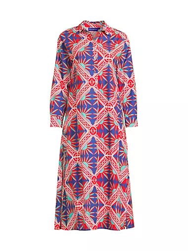 Макси-лат Курта Brussels из хлопка от Ro',s Garden с длинными рукавами и геометрическим узором