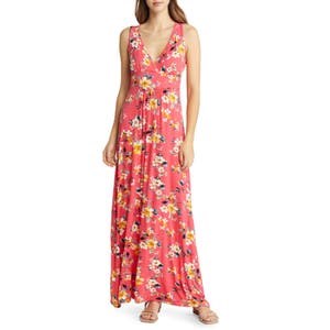 Летнее и сладкое, это макси-платье из эластичного джерси подчеркивает фигуру с помощью V-образного выреза и собранного Empire пояса.