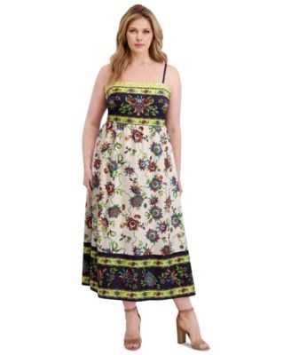 Макси-платье большого размера Siena с квадратным вырезом и бордюрным принтом