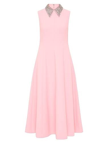 Макси-платье Isabella от Rebecca Vallance выполнено в форме силуэта A и украшается воротником с стразами.