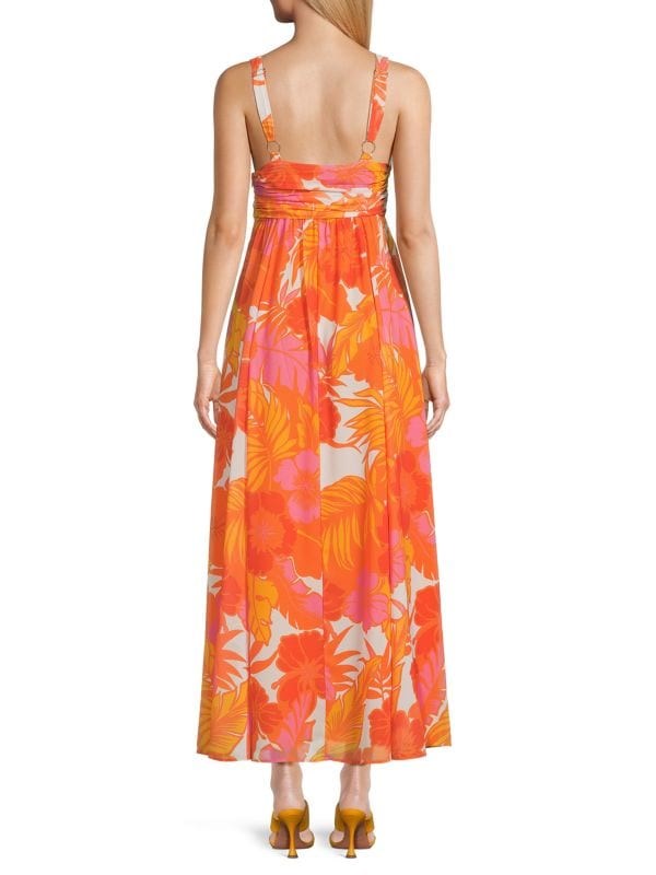 Это платье из шифона от Area Stars выполнено в ярком тропическом принте и имеет глубокий V-образный вырез.