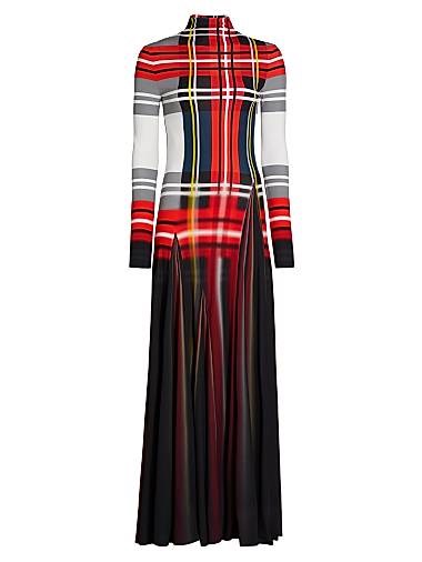 Макси-платье с гофрировкой и клетчатым принтом от Loewe, длинными рукавами, из 100% вискозы, произведено в Италии