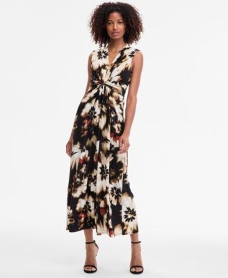 Макси-платье с принтом и закрученной деталью спереди от Anne Klein, облегающий силуэт, V-образный вырез