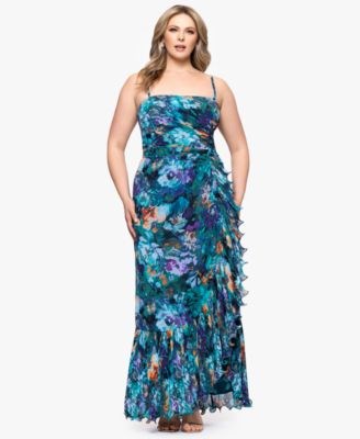 Макси-платье с принтом, рюшами и открытыми плечами для полных от Xscape, 100% полиэстер