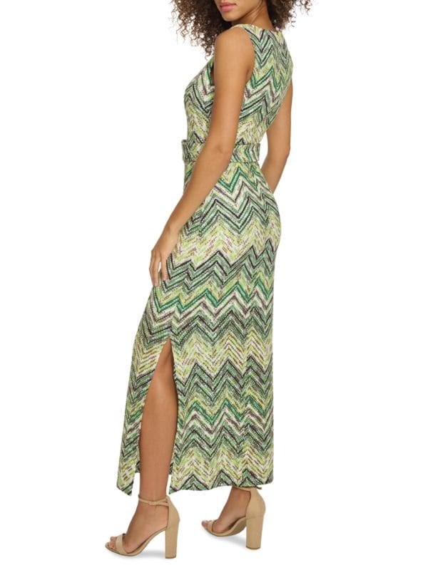 Макси-платье с открытой вязкой Siena имеет свободный силуэт и пояс на талии, создавая стильный образ.