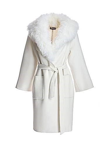 Maximilian Пальто с поясом и меховой отделкой, 70% шерсть и 30% кашемир, с съемным воротником