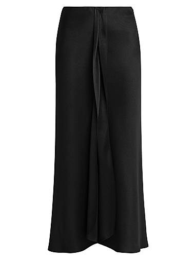 Эта миди-юбка выполнена из итальянского шелка и отличается строгим, почти прямым силуэтом, а также эффектным драпированным разрезом спереди.