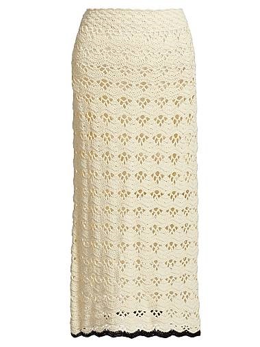 Юбка миди Rhiannon от Zimmermann изготовлена из хлопка и имеет крючковую вязку с облегающим силуэтом.