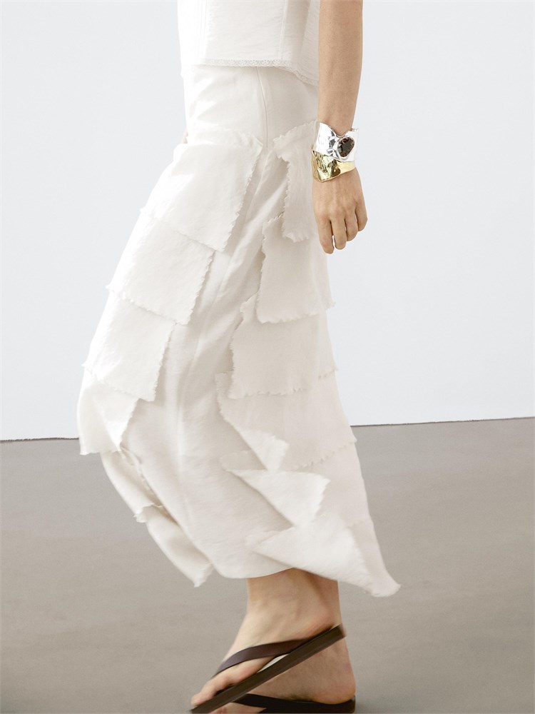 Миди юбка с рюшами от Massimo Dutti, легкая и комфортная ткань, эффект потертости