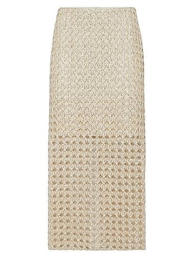 Миди-юбка с вышивкой Zellige от Brunello Cucinelli, выполненная из джута и хлопка, с шелковистой подкладкой