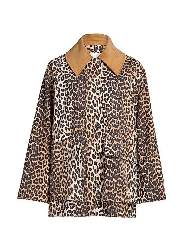 Миди-куртка с леопардовым принтом из льна и органического хлопка, Ganni