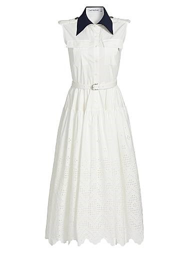 Миди-платье А-силуэта из хлопка с вышивкой в виде глазков и контрастным воротником от Self-Portrait