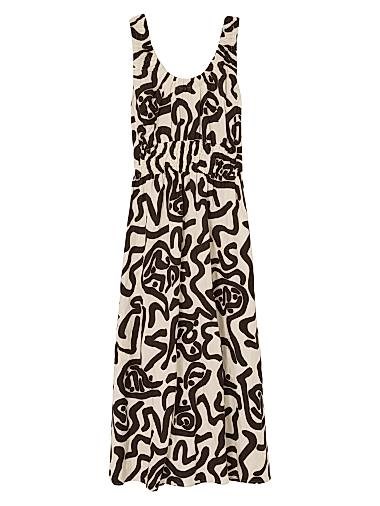 Миди-платье Akari с принтом от Reiss, с рюшами на поясе, из 52% льна, без рукавов