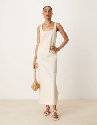 Миди-платье ASOS Tall из хлопка и льна с круглым вырезом, удобной посадкой и боковыми разрезами