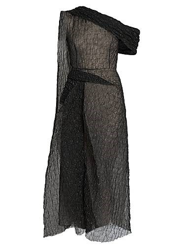 Миди-платье из металлизированной полупрозрачной ткани на одно плечо от Erdem с волнистым подолом, 66% полиамид, 34% полиэстер