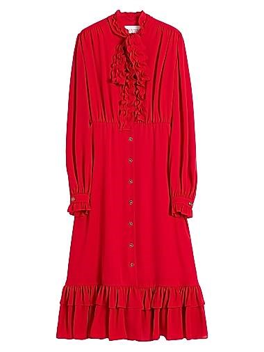 Миди-платье с рюшами и застежкой на пуговицы из шифона от Valentino Garavani, Италия