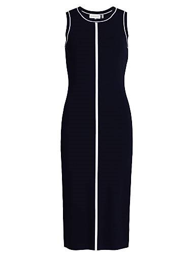 Сшито из компактной трикотажной ткани, миди-платье-свитер Adrianna от Elie Tahari имеет контрастную отделку по горловине, проймам и центральной части.