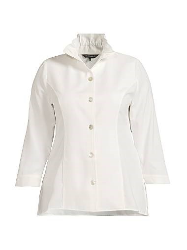 Ming Wang Блузка из крепа де шен большого размера с пуговицами и рюшами, короткие рукава