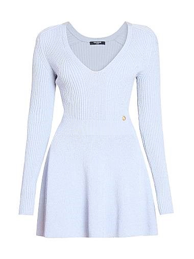 Мини-юбка Balmain с плетёным узором и V-образным вырезом, длинными рукавами из вискозы и полиэстера, Италия