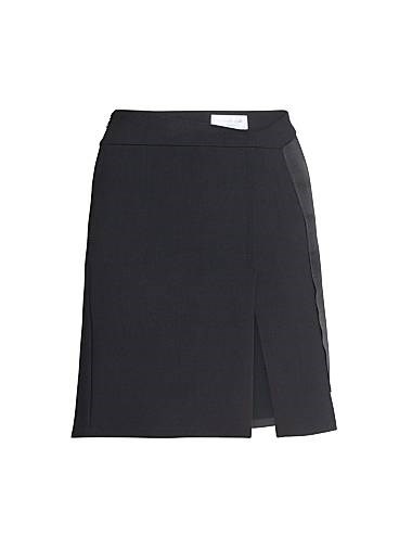 Эта мини-юбка из шершащего смеси украшена сатиновыми полосками в стиле смокинга.