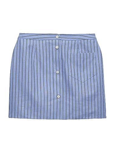 Эта мини-юбка выполнена из шамбре — легкой ткани, придающей дизайну современный и повседневный стиль. Полосатая юбка имеет слегка расклешенный силуэт и дополнена простыми деталями, такими как накладной карман и культовый треугольный логотип из ткани.