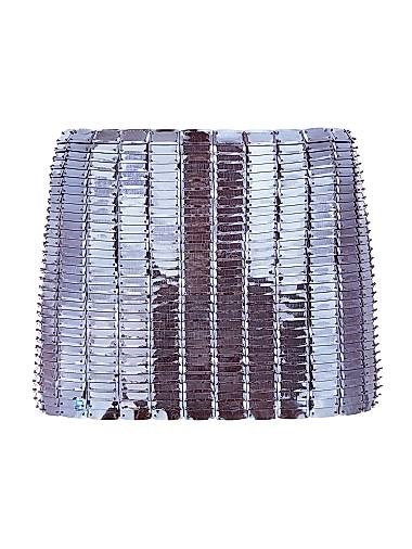 Мини юбка Rue от The Attico сверкает благодаря рядам пайеток, создавая футуристичное настроение.