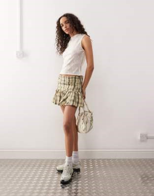 Мини-юбка в клетку с необработанным краем от COLLUSION, молочного цвета, средней посадки