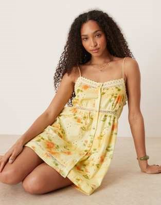 Мини-платье ASOS DESIGN без рукавов с пуговицами и цветочным узором из легкого хлопка