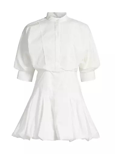 Мини-рубашка Effie от Simkhai предлагает объёмные рукава до локтей и открытыйStand воротник, дополненный юбкой силуэта баллон.