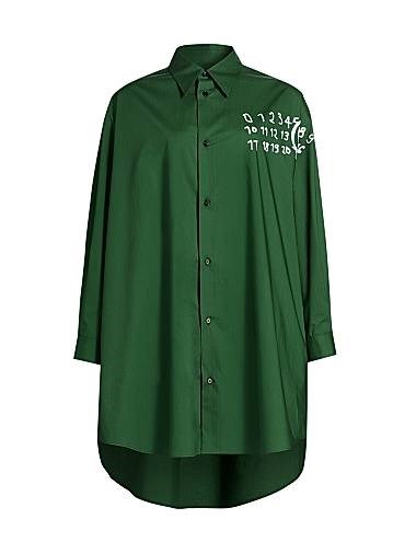 Мини-платье, выполненное из итальянского хлопкового поплина, MM6 Maison Margiela предлагает инновационный флуоресцентный принт и детали, вдохновленные рубашкой.