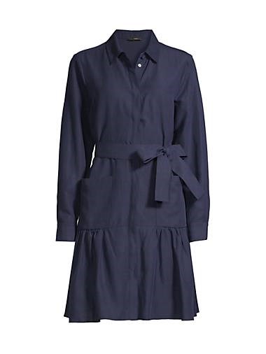 Мини-платье с поясом, длинными рукавами и воротником-рубашкой от Kobi Halperin