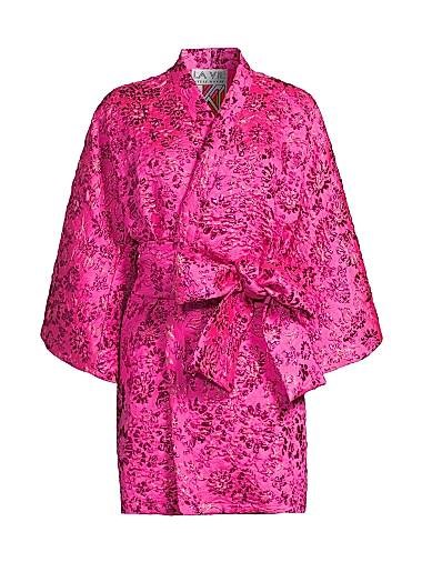 Мини-платье с цветочным узором из парчи от La Vie Style House с длинными рукавами и поясом