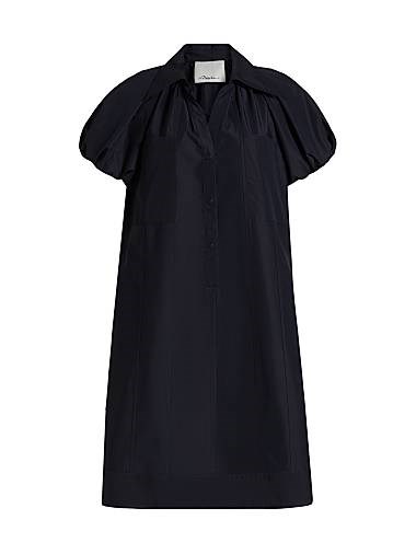 Мини-сорочка из сатина 3.1 Phillip Lim с стойким воротником и короткими пышными рукавами