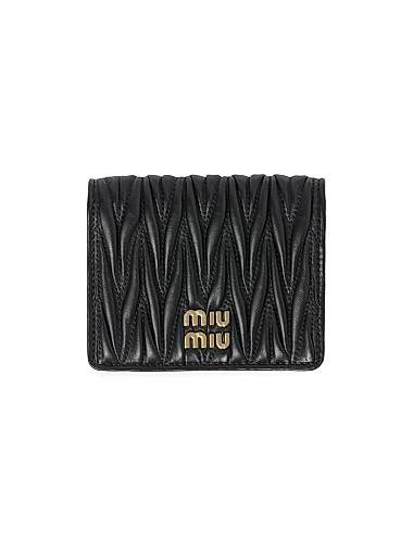 Miu Miu Компактный мателассированный бумажник из овечьей кожи с кнопочным замком и отделениями для карт