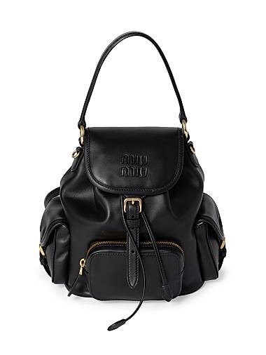 Miu Miu Рюкзак из натуральной телячьей кожи с золотистой фурнитурой и карманами, 18 см х 21.8 см х 11.4 см
