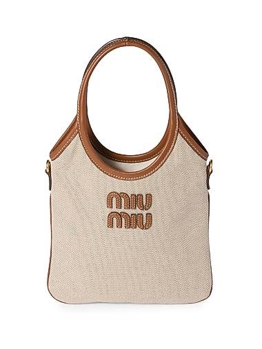 Miu Miu Сумка из плотного холста и кожи с ручками, съемным плечевым ремнем и кожаным логотипом