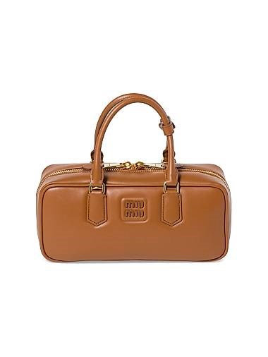 Miu Miu Сумка с кожаными ручками, мягкой наполнителем, регулируемым ремнем и золотистой фурнитурой, размер 27x12x9 см