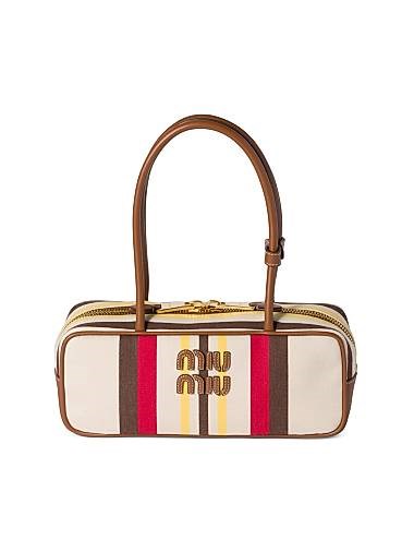 Miu Miu Сумка-торба из полотна и кожи с золотистой фурнитурой и ручками, размер 28 х 11 х 8 см