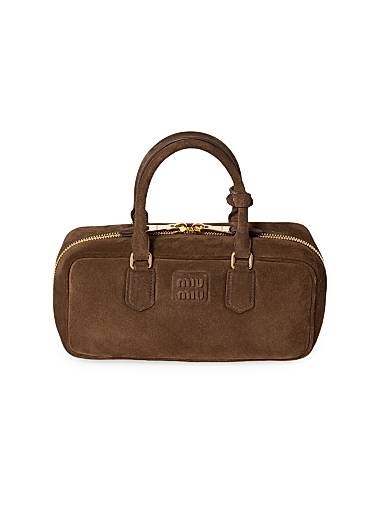 Miu Miu Замшевая сумка Arcadie с кожаными ручками, съемным плечевым ремешком и хлопковой отделкой