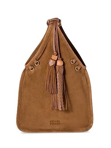 Miu Miu Замшевая сумка с кисточками из 100% овечьей кожи, с золотистой фурнитурой, размером 24x37 см