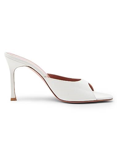 Мюли Alexa из нубука на каблуке 95 мм от Amina Muaddi с открытым носком и итальянским качеством