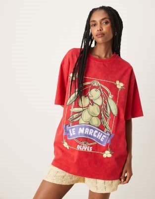 Модная оверсайз толстовка ASOS DESIGN с оливковым графическим принтом и короткими рукавами