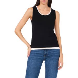 Модный безрукавный свитер Vince Camuto с контрастной отделкой и силуэтом, подчеркивающим фигуру