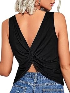 Дизайн с завязкой на спине: Безрукавный топ с круглым вырезом и узлом на открытой спине создает оригинальный и стильный образ.