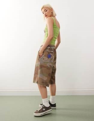 Молодёжные шорты COLLUSION с камуфляжным узором, эластичным поясом и удлинённым фасоном