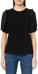 Молодежный топ Anne Klein с комбинированными рукавами и рюшами, 96% полиэстер, V-образный вырез