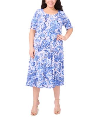 Msk Платье миди плюс сайз с принтом, мягкая трикотажная ткань, 95% полиэстер, 5% спандекс