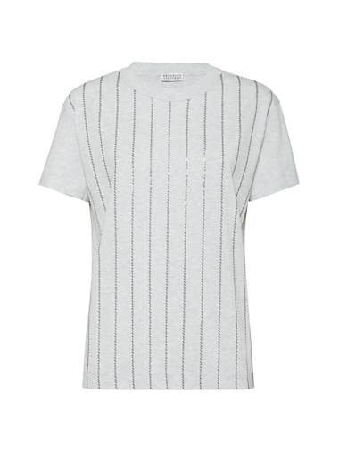 Мужская футболка Brunello Cucinelli из 100% хлопка с вышивкой в полоску, Италия