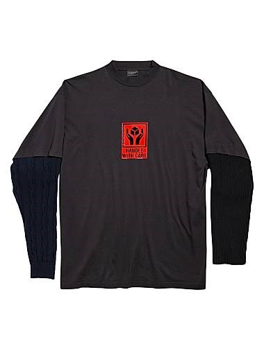 Мужская футболка с длинными рукавами Balenciaga Handle with Care из хлопка и полиэстера, панельный дизайн, производство Португалия