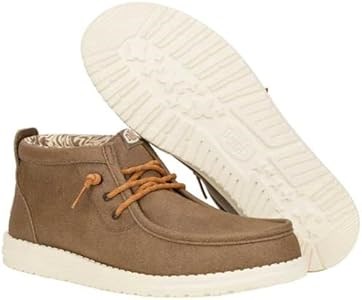 Мужские ботинки Hey Dude Wally Mid из вощеного холста цвета орех с эластичными шнурками и лёгким дизайном